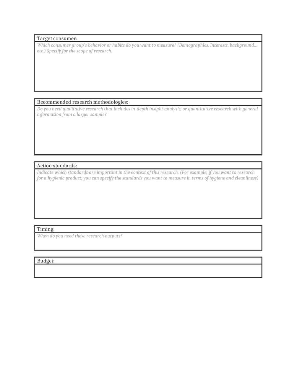 Market Research Brief Template| Market Research Planner| Market Design Brief|Market Research Proposal Template| Client Brief|Target Audience